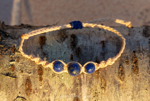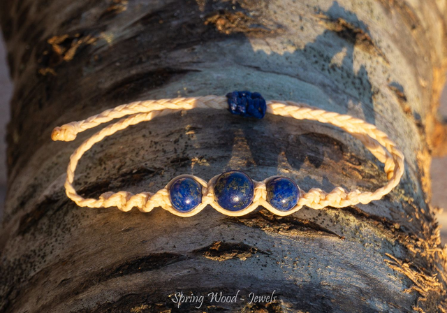 Braccialetto realizzato a mano con la tecnica del macramè, con filo cerato italiano di elevata qualità.Lapislazzuli: